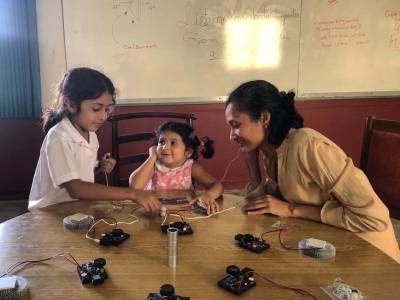 It is based on seven synthesizer invented and designed by the artists. The only power source that is needed is provided by the body temperature of the participants in respect to the room temperature. The pitch of the synthesizer will change with the skin resistance and also with differences in the ambient light: Symbiotic Synth.
